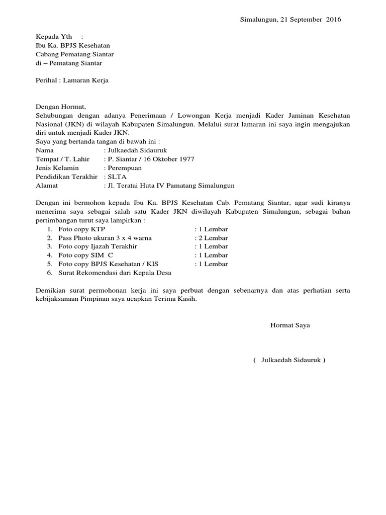 Contoh Lamaran Bpjs Kesehatan / Pengadaan Tenaga Relawan Covid 19 Rsud Dr Iskak Tulungagung Jawa Timur Tahap 2 Loker Kesehatan / We did not find results for:. Maybe you would like to learn more about one of these? Check spelling or type a new query. We did not find results for: